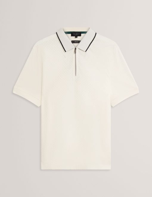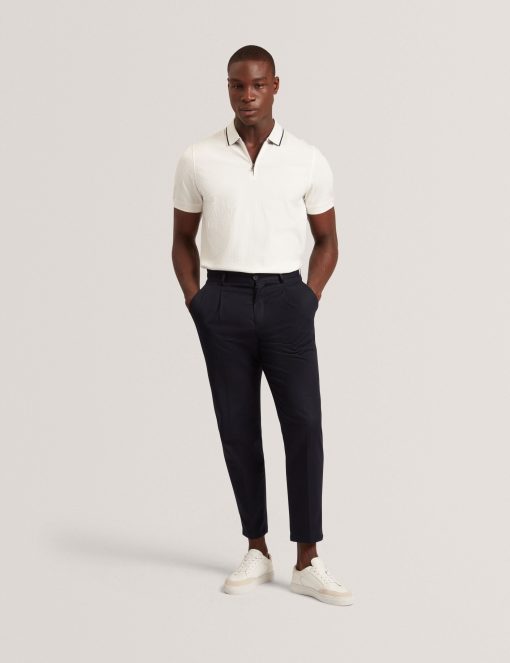 COPHEN makes a sharp addition to your polo collection. Our signature T texture gives it that designer twist, and we’ve trimmed the collar with a stand-out single stripe. Made from stretch cotton fabric, this piece is complete with a modern zip neck.