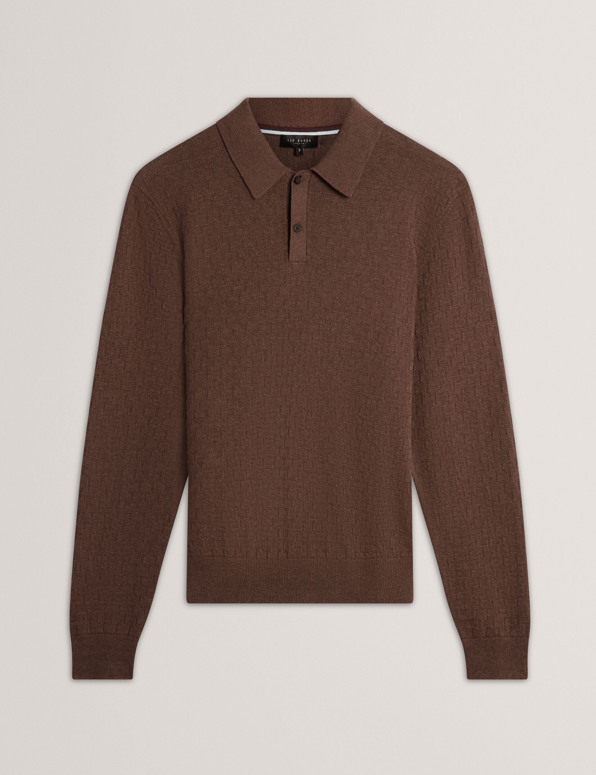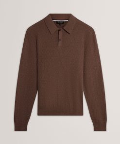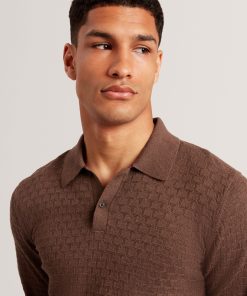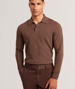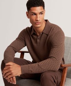 Ted Baker Men’s Gaten – Long Sleeve T Stitch Polo | Dk-brown