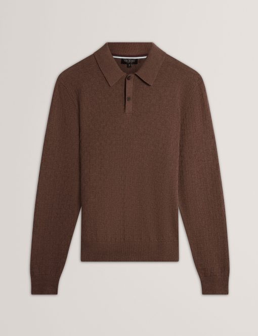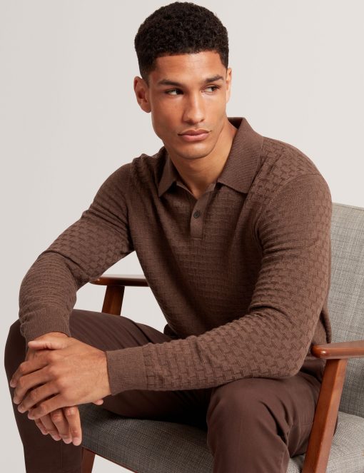 Ted Baker Men’s Gaten – Long Sleeve T Stitch Polo | Dk-brown