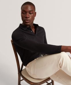 Ted Baker Men’s Ignac Soft Touch Jersey Long Sleeve Polo In Black | Black