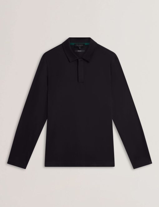 Ted Baker Men’s Ignac Soft Touch Jersey Long Sleeve Polo In Black | Black