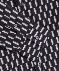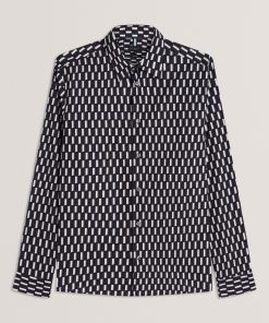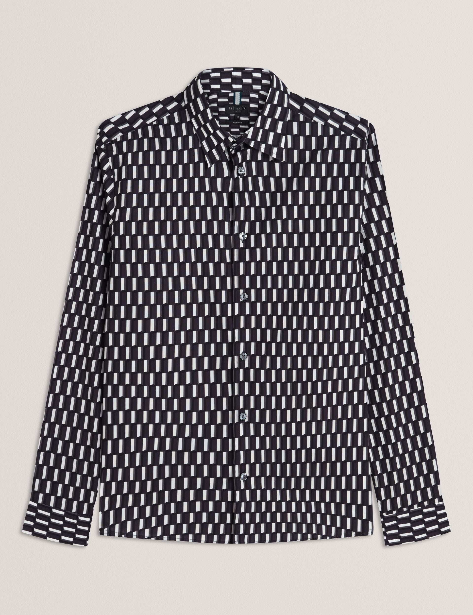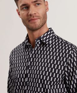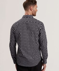 Ted Baker Men’s Pearso – Geometric Stripe Long Sleeve Cotton Shirt | Black