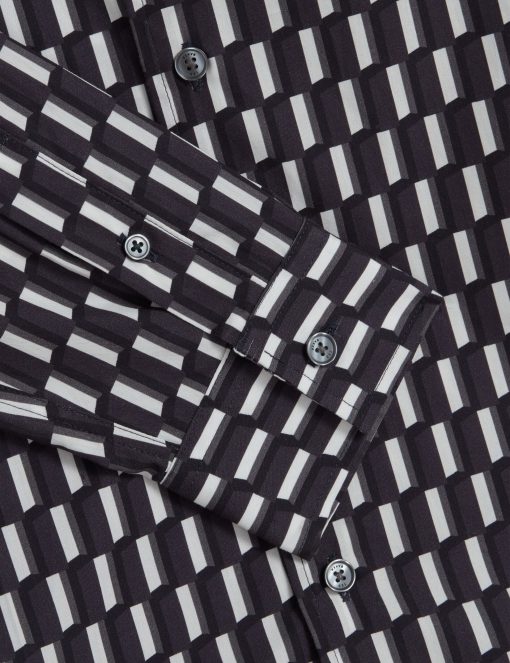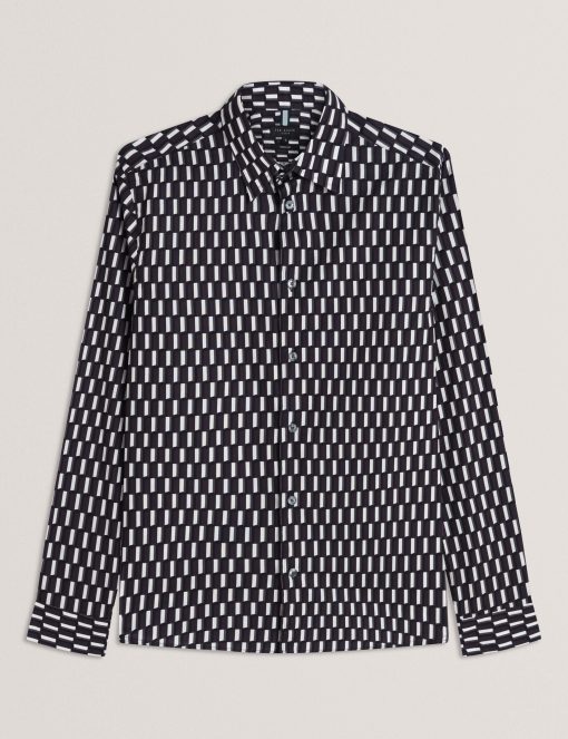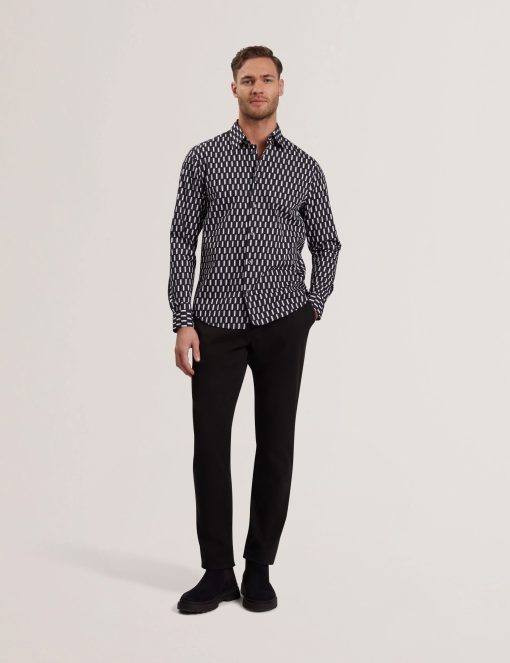 Ted Baker Men’s Pearso – Geometric Stripe Long Sleeve Cotton Shirt | Black