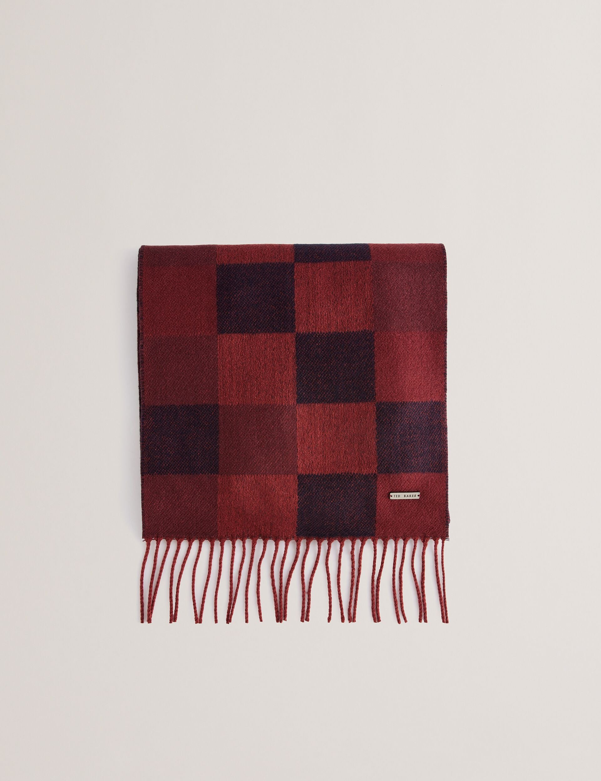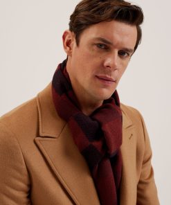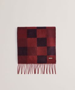 Ted Baker Men’s Peterrr – Block Check Scarf With Fringe Trim | Oxblood