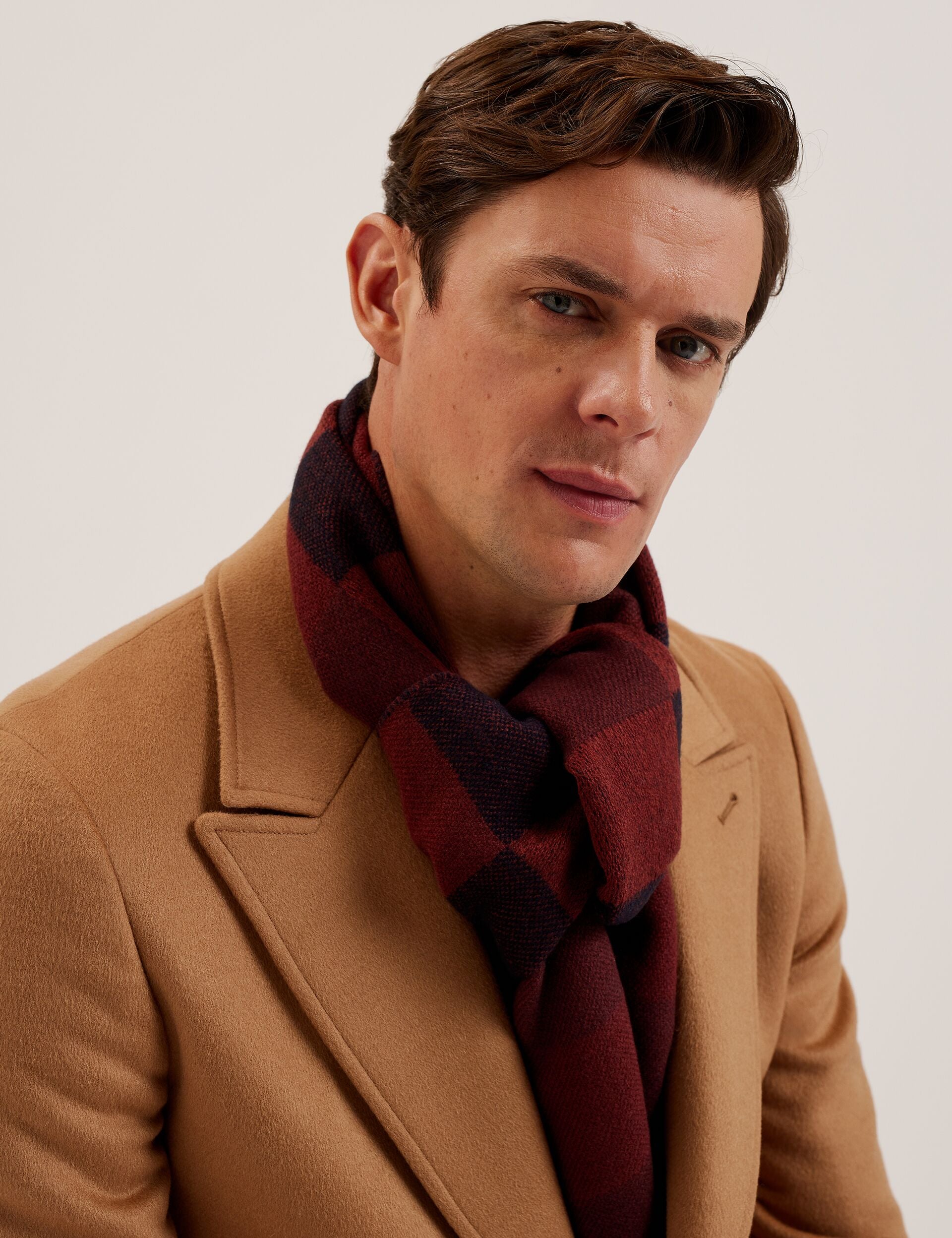 Be the first to review “Ted Baker Men’s Peterrr – Block Check Scarf With Fringe Trim | Oxblood” Cancel reply