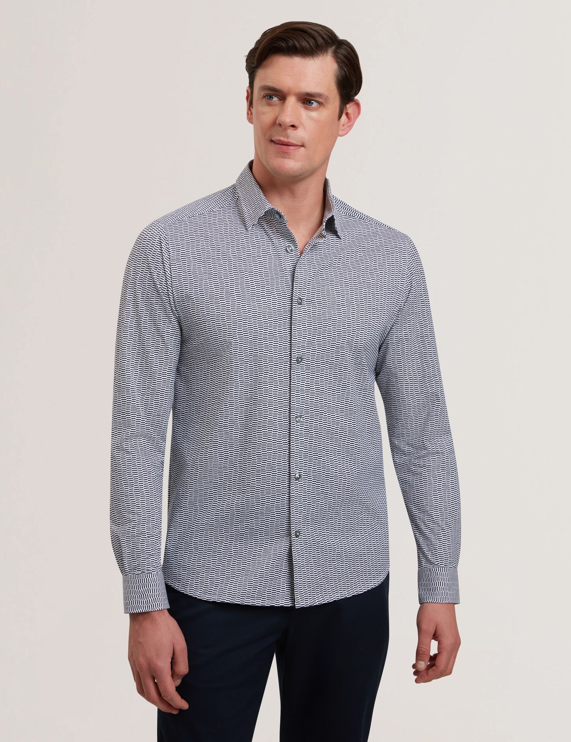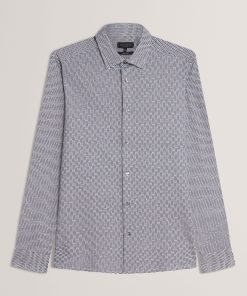 Ted Baker Men’s Wavey – Long Sleeve Geo Print Shirt | Black
