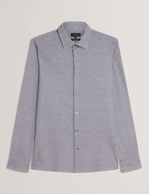 Ted Baker Men’s Wavey – Long Sleeve Geo Print Shirt | Black