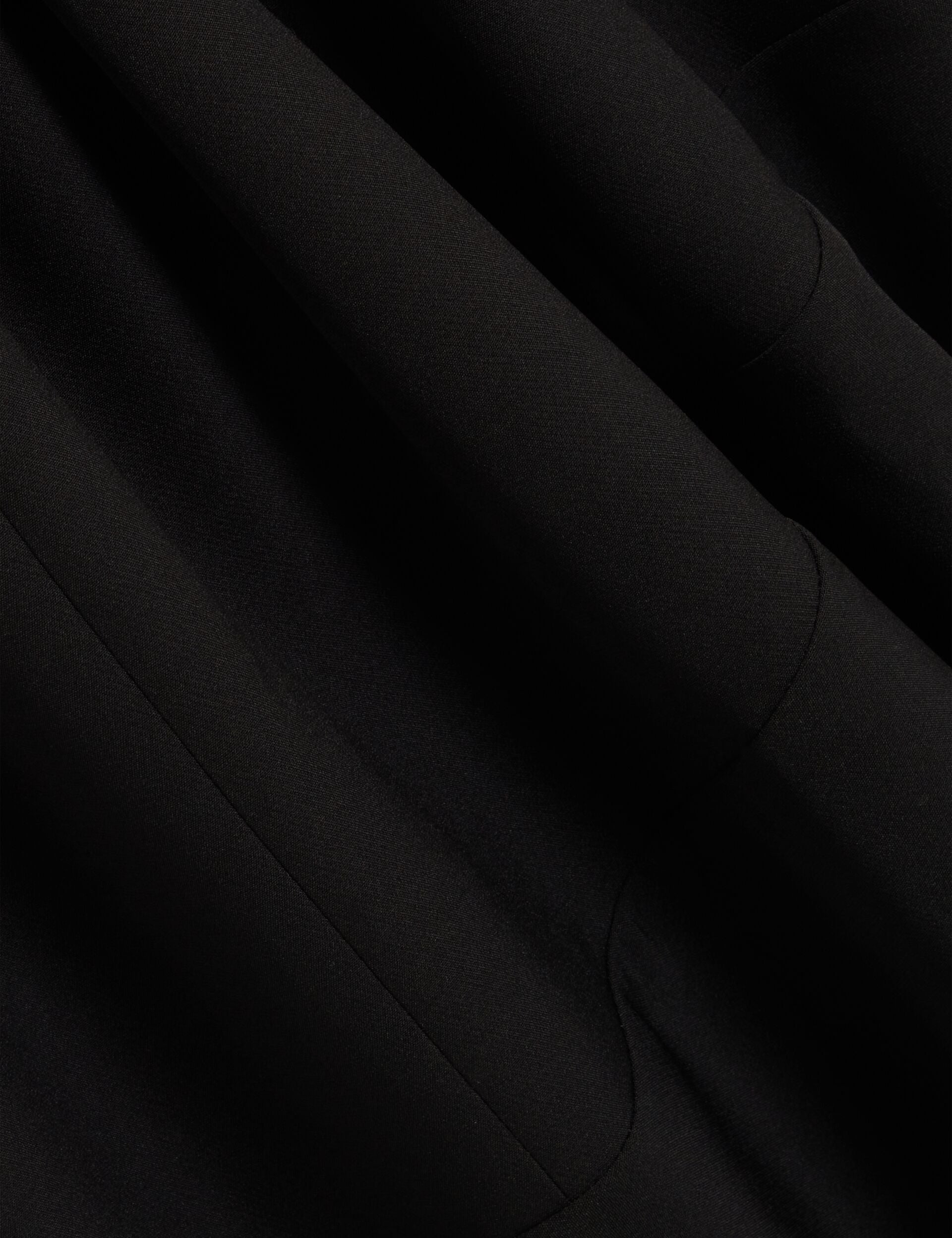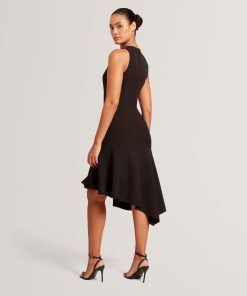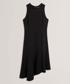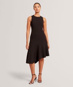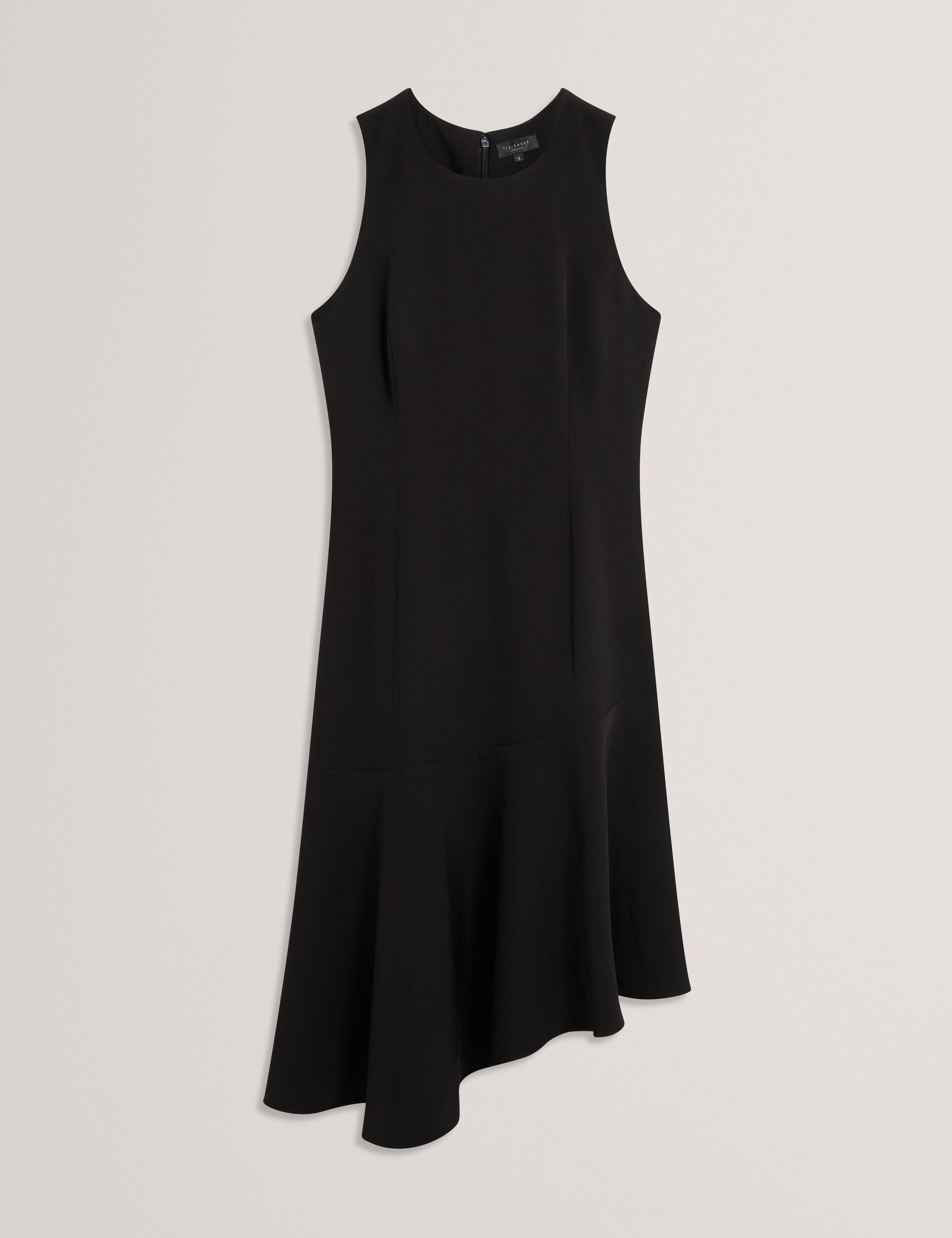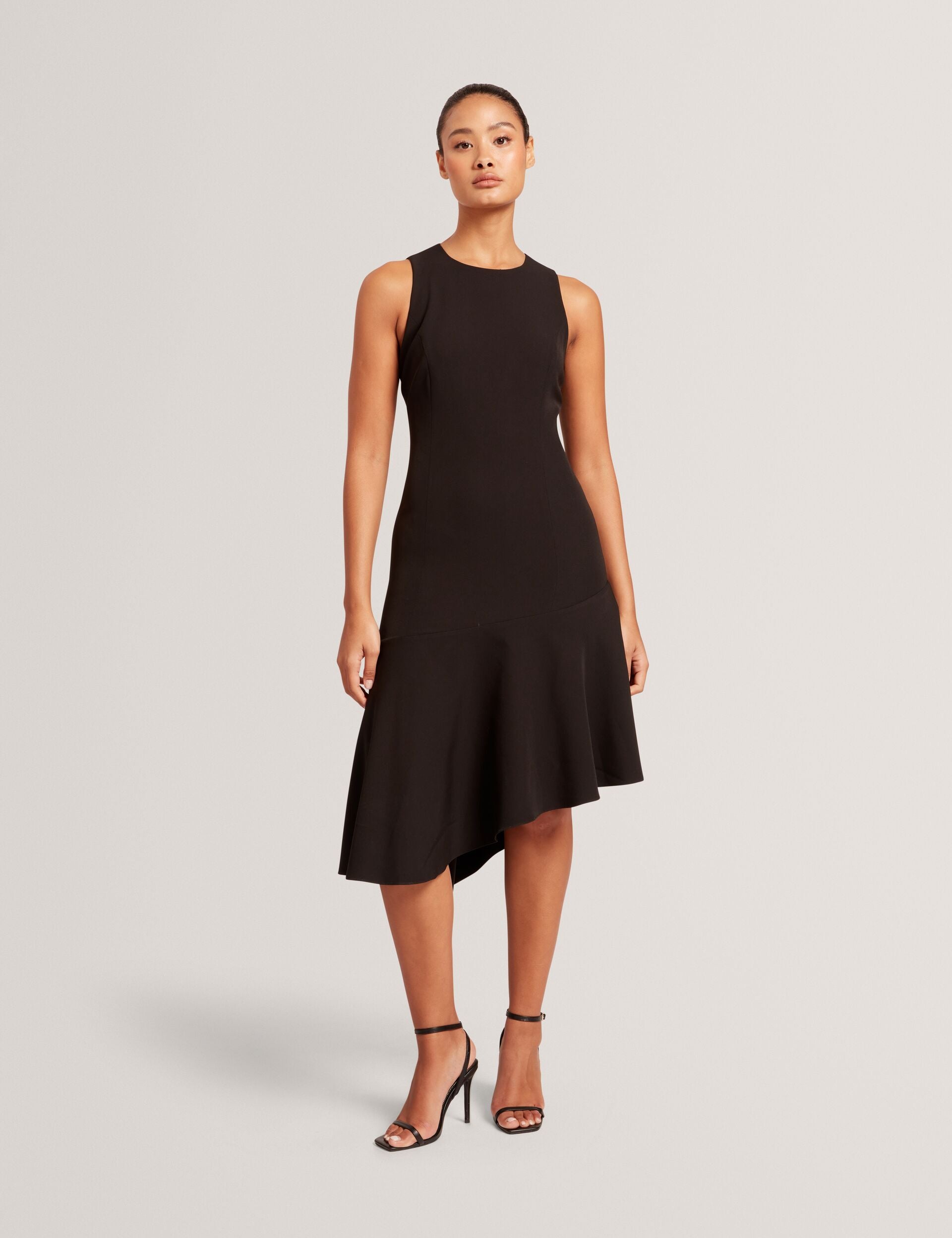 This dress offers a bold, modern twist on classic elegance, featuring an eye-catching asymmetric hem that creates a flattering, dynamic silhouette for a chic and sophisticated look.