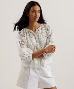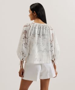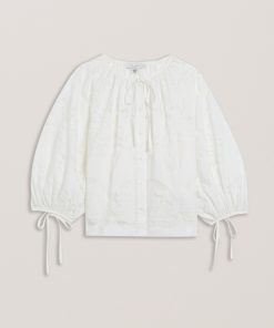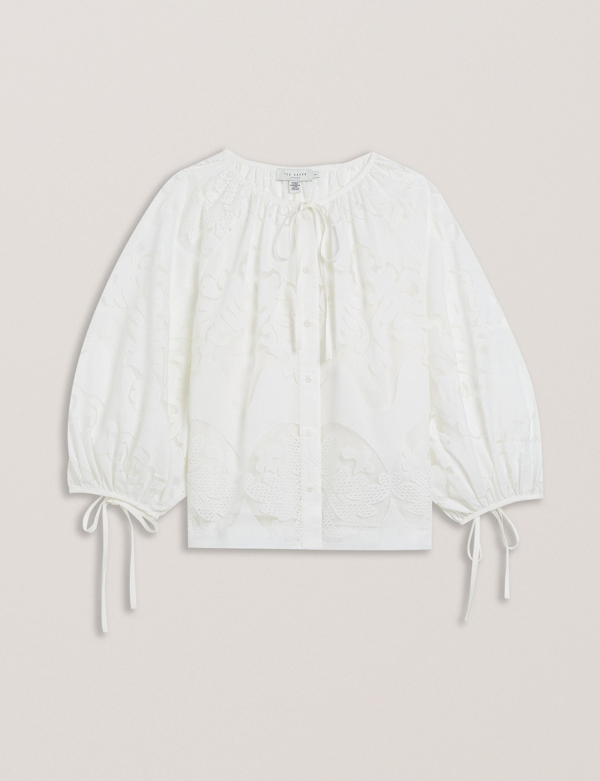 Ted Baker Women’s Bacina – Lace 3/4 Balloon Sleeve Blouse | White
