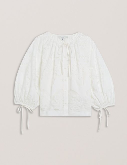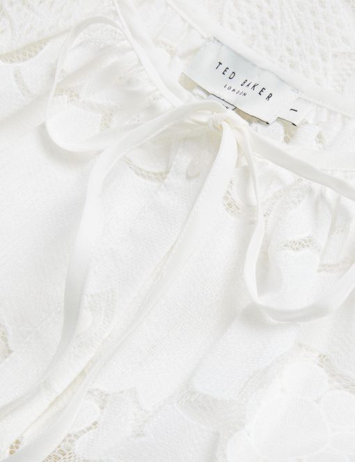 Ted Baker Women’s Bacina – Lace 3/4 Balloon Sleeve Blouse | White