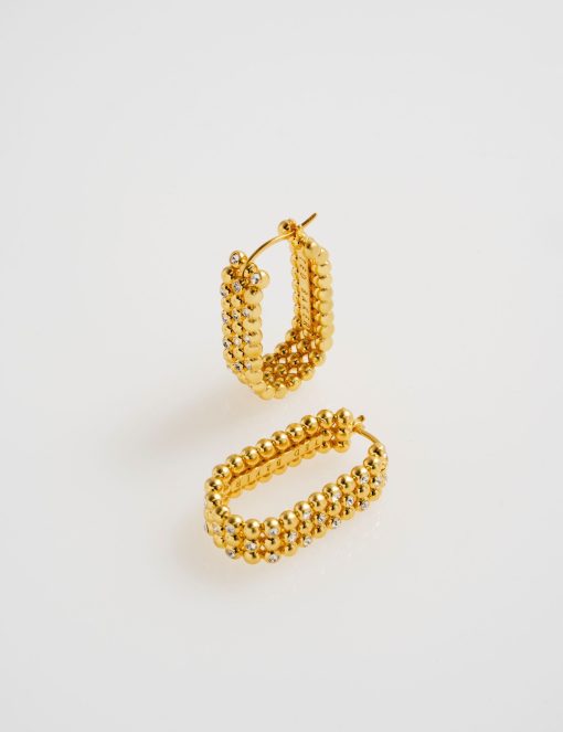 Bring a touch of texture to your jewellery collection with BOLLIE. These rectangular hoops feature rows of gold-tone beads interspersed with delicate crystal embellishments for a look that’s both modern and timeless.
