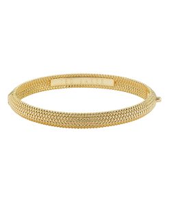 A contemporary take on a classic, try the DOTETT bangle bracelet. The dotted texture design complete in gold-tone plating creates depth and shine for a piece that will stand out in your jewellery box. An easy-to-use discreet hinge closure gives it a secure fit.