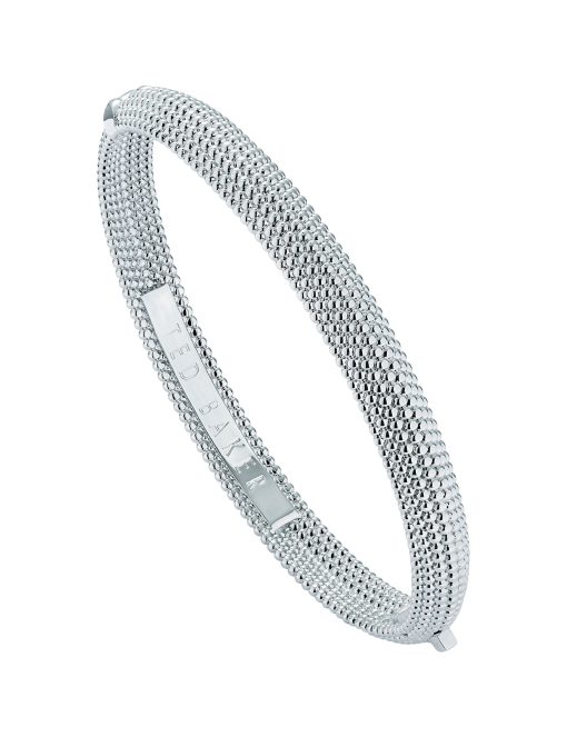 A contemporary take on a classic, try the DOTETT bangle bracelet. The dotted texture design complete in silver-tone plating creates depth and shine for a piece that will stand out in your jewellery box. An easy-to-use discreet hinge closure gives it a secure fit.