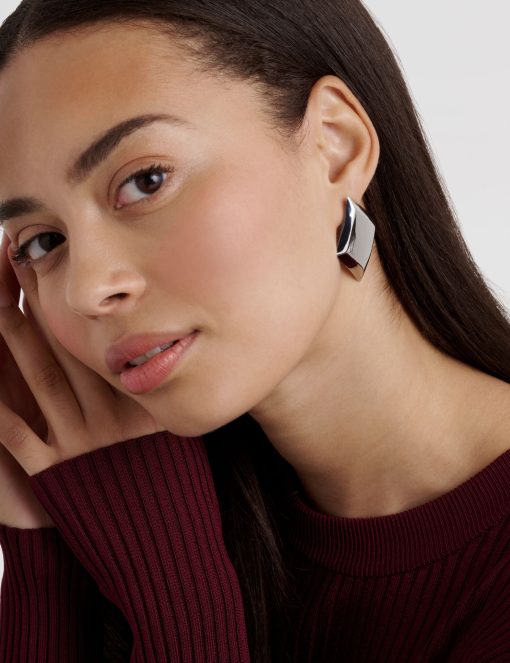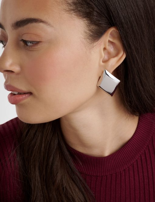 Sleek, sculptural, and effortlessly striking, GEORGIE makes a bold statement in a minimalist way. These silver-tone earrings feature a smooth, square-shaped design that adds a touch of modern edge to any outfit.