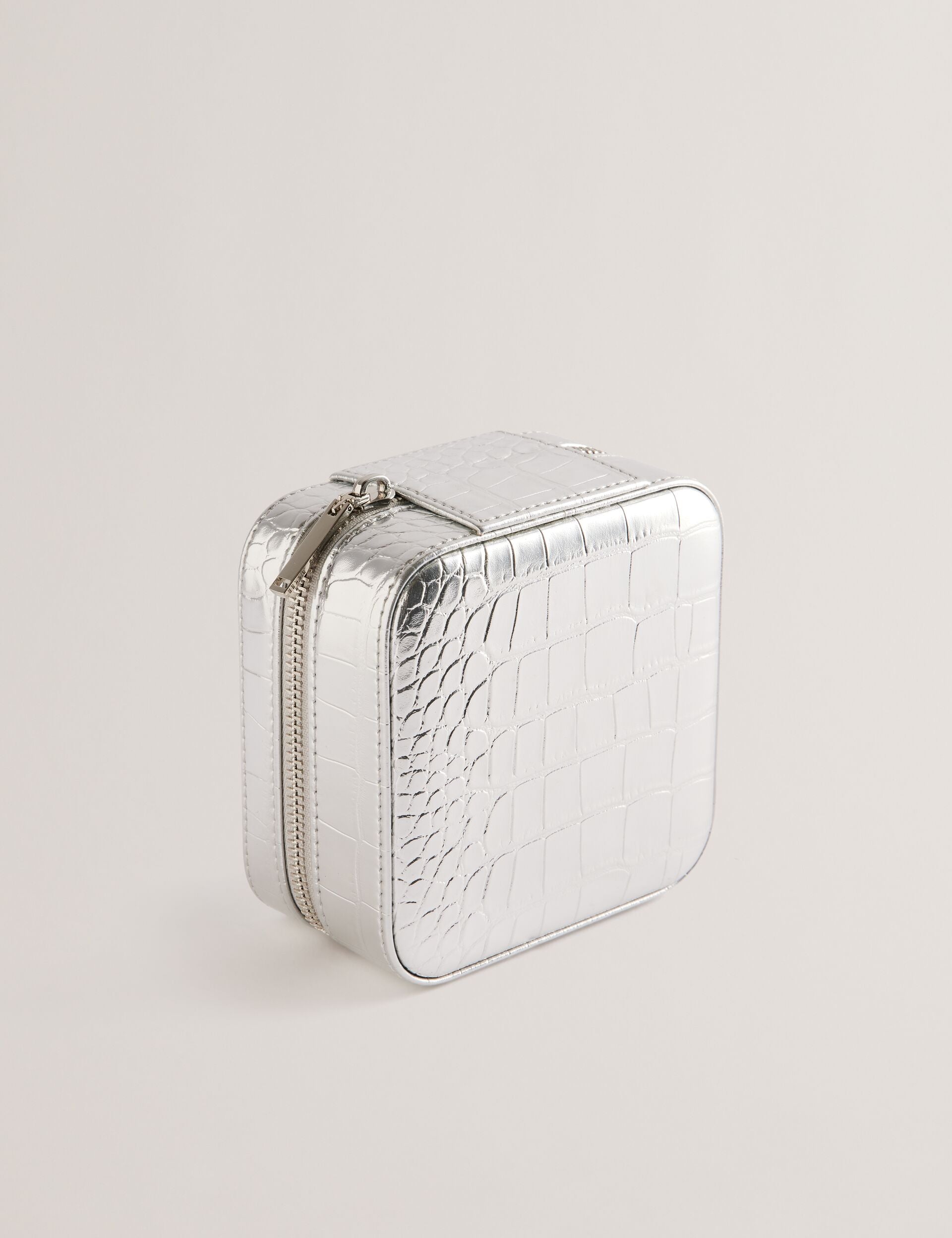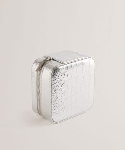 Ted Baker Women’s Hazelli – Croc Effect Zip Around Jewellery Case | Silver