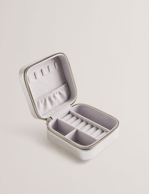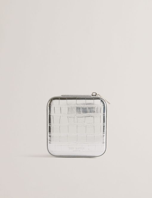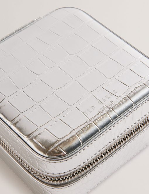 Ted Baker Women’s Hazelli – Croc Effect Zip Around Jewellery Case | Silver