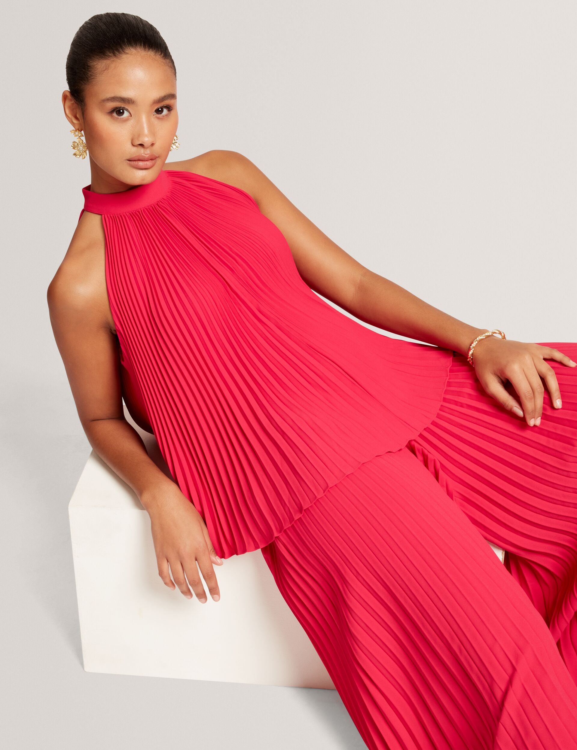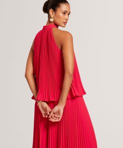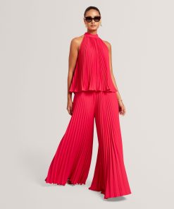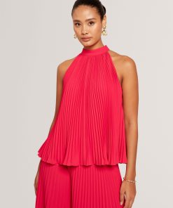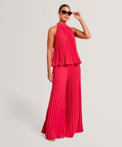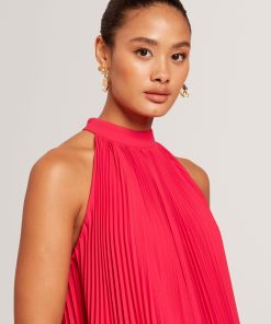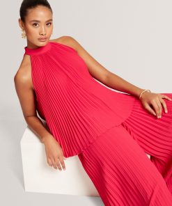 Ted Baker Women’s Jamaya – High Halter Neck Pleated Sleeveless Top | Fuchsia