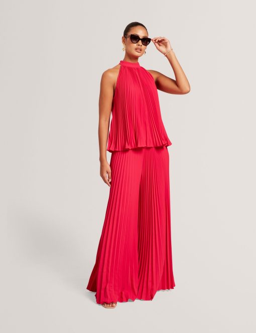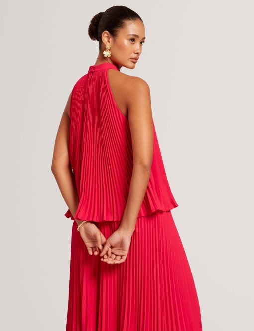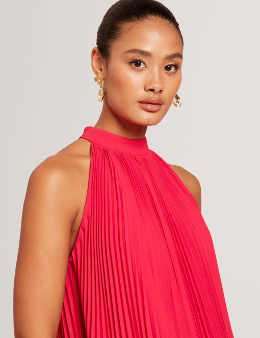 Ted Baker Women’s Jamaya – High Halter Neck Pleated Sleeveless Top | Fuchsia