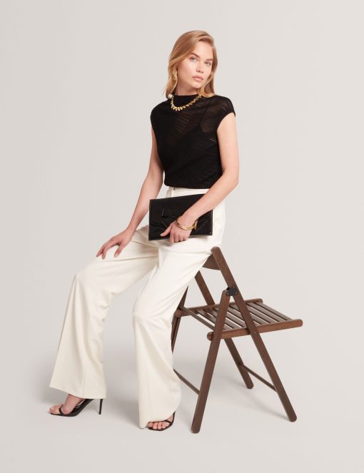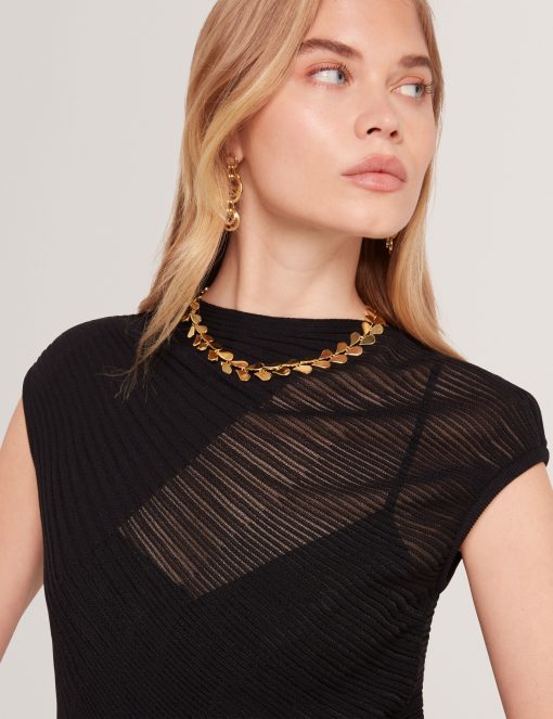 - Engineered knit with sheer sections