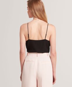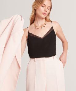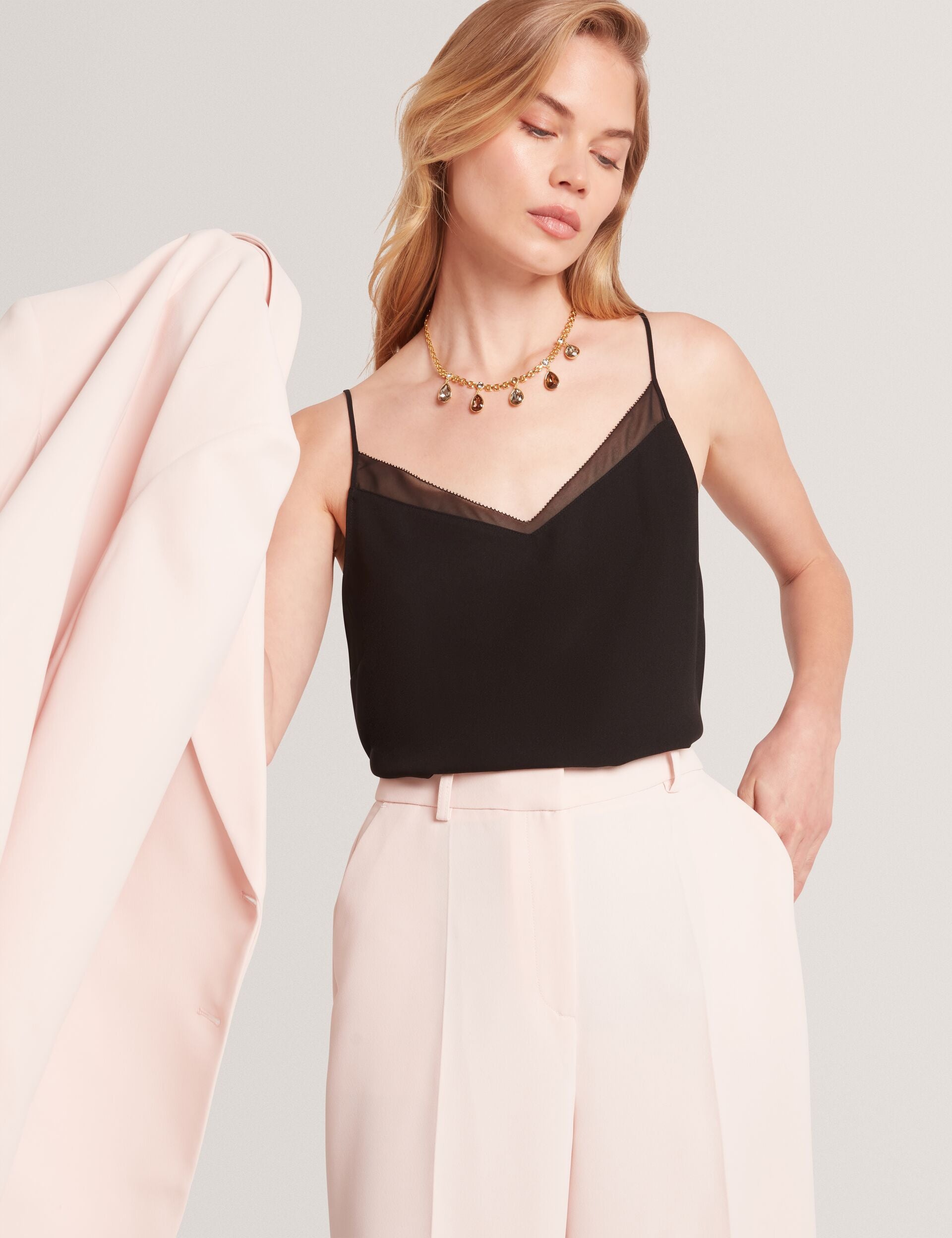LULEA is the skimpy staple your wardrobe needs with a flattering V-shape neckline and adjustable spaghetti straps. Elevated by a sheer chiffon trim, this light cami top has got you covered (mostly) for scorching summers and endless parties.