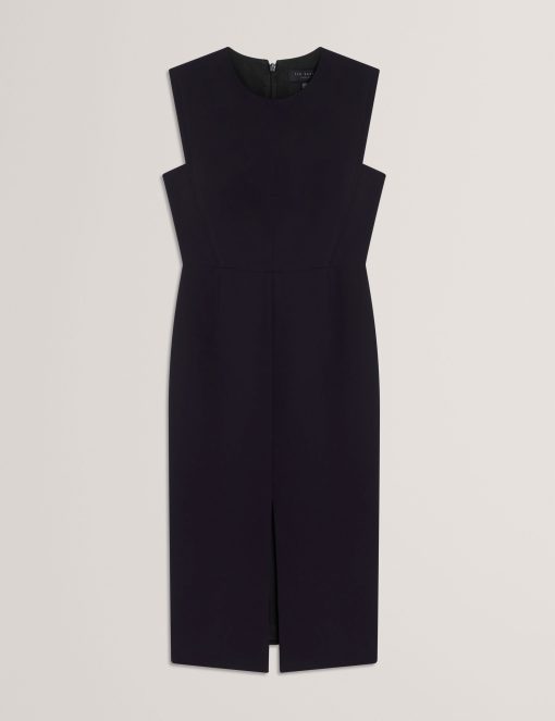 Ted Baker Women’s Manabdl – Tailored Sleeveless Midi Dress With Front Split | Navy