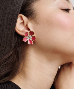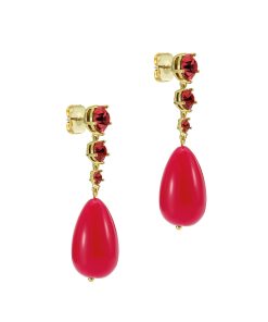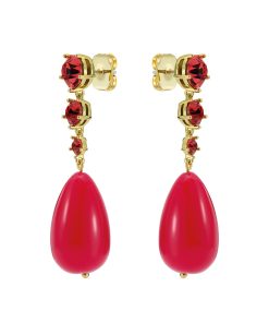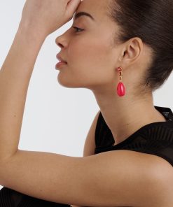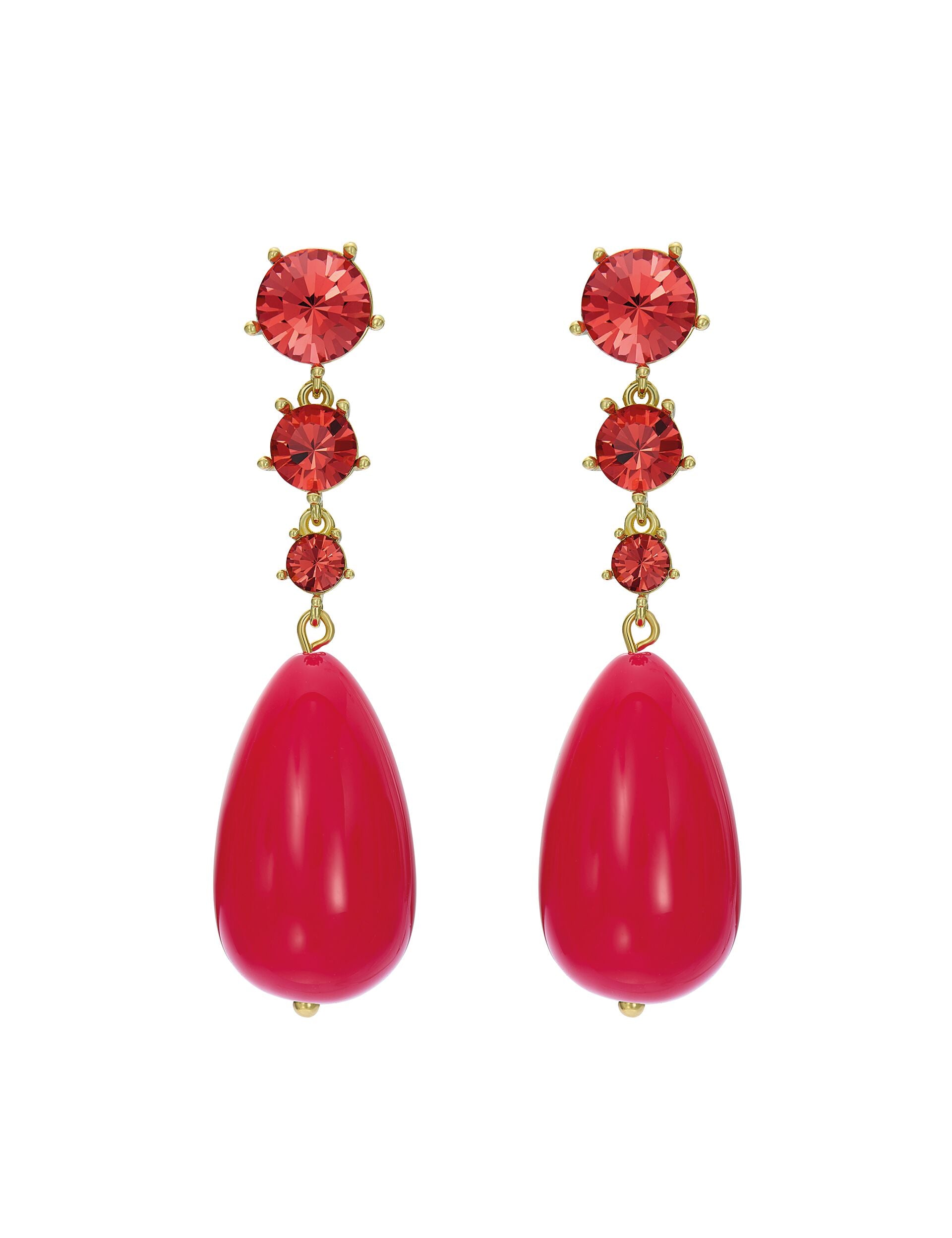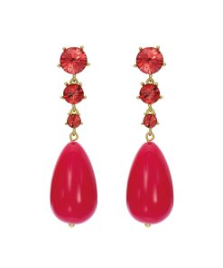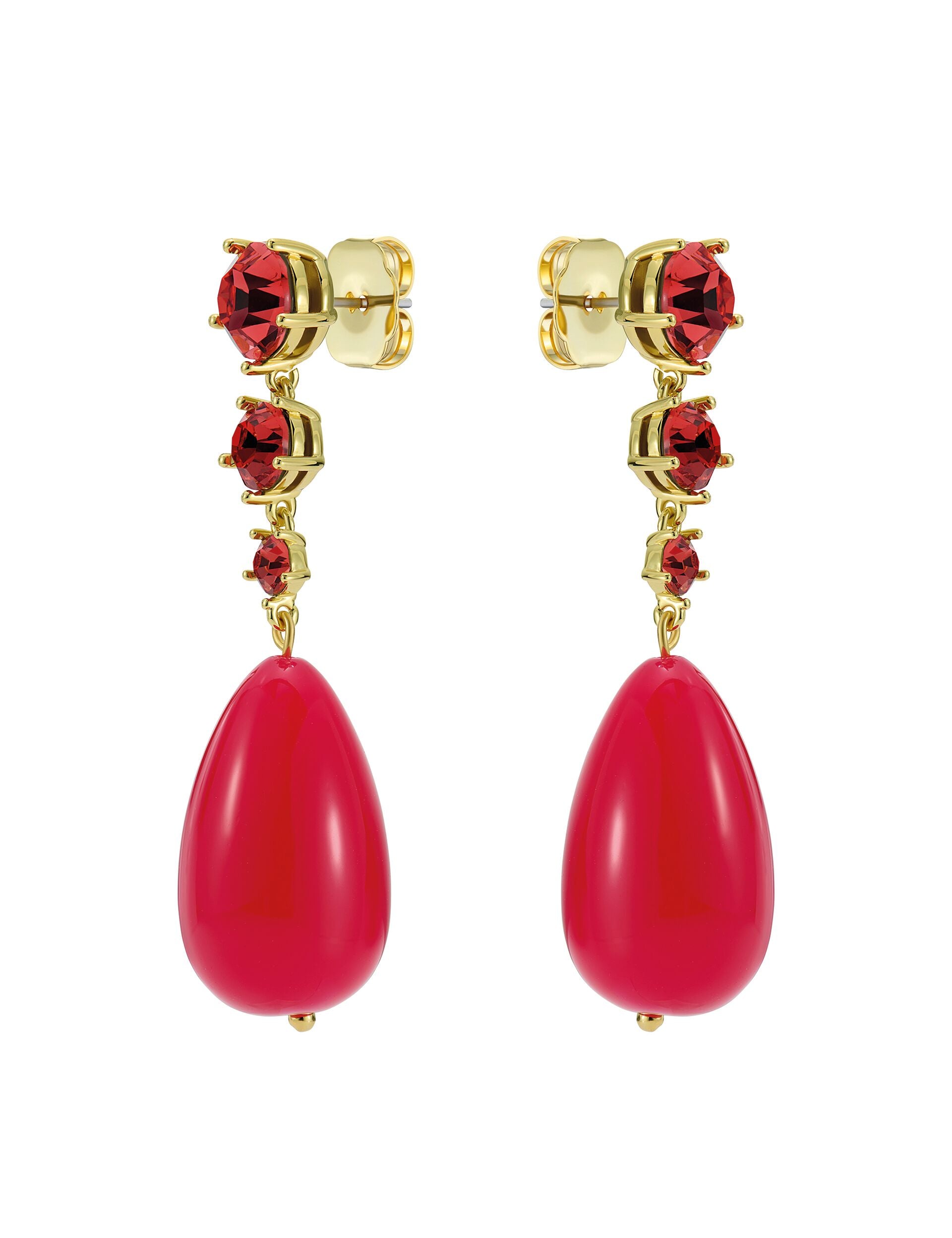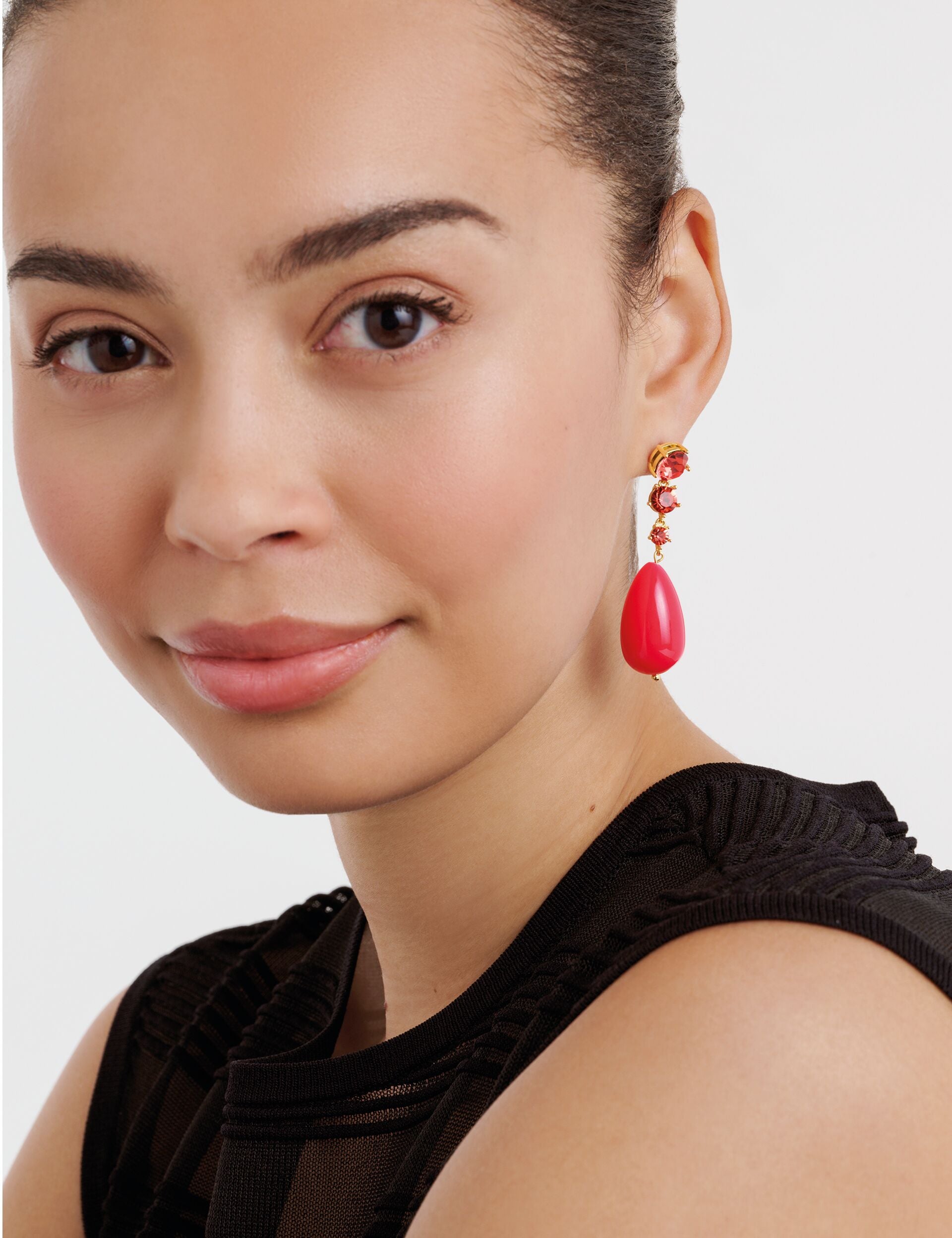 Accessorise to the nines with these PEARSTI statement earrings. A teardrop-shape pendant in vibrant pink is suspended from a row of matching colour crystals stones for the perfect balance of colour and sparkle.