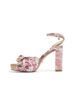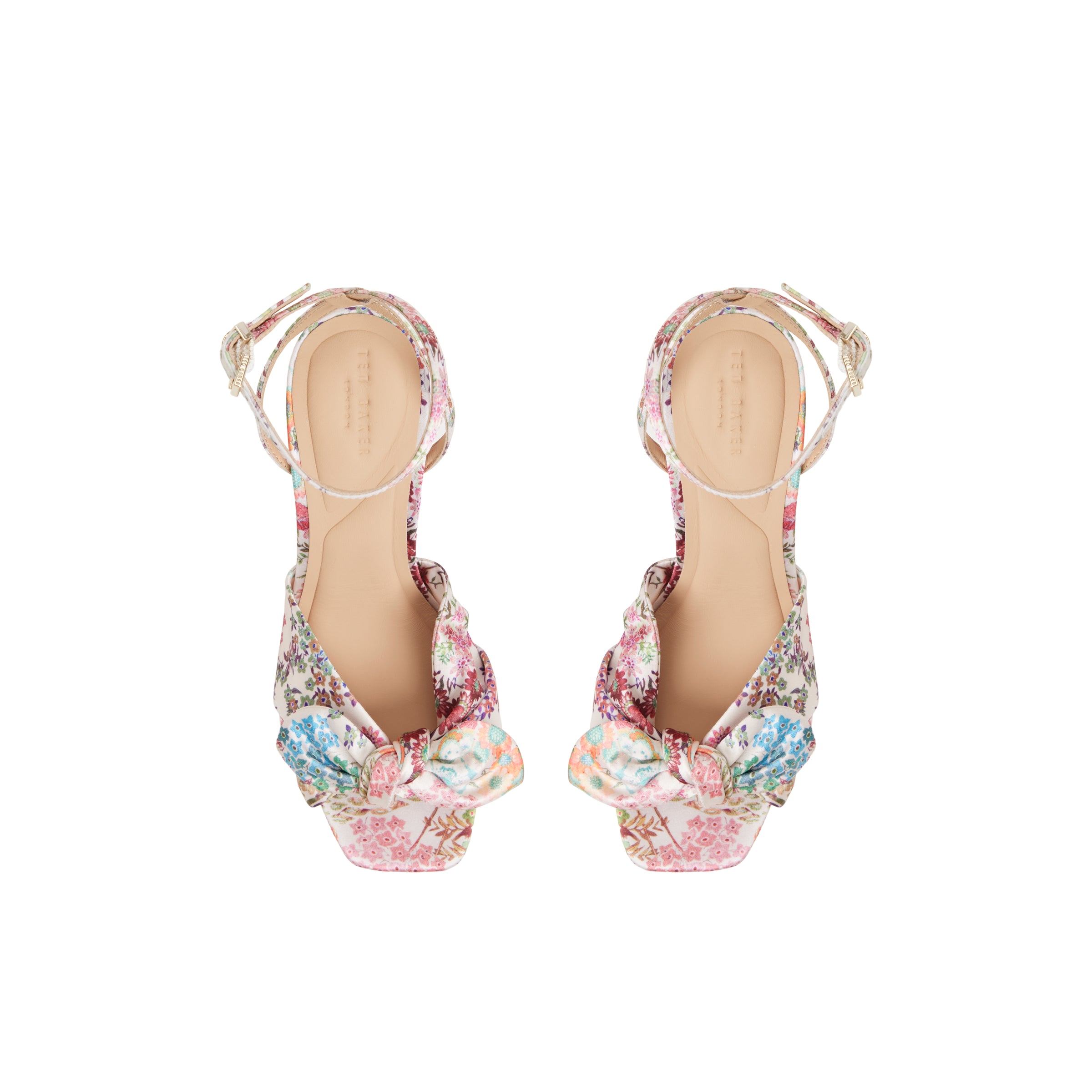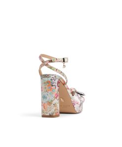 Step into statement style with HALLIE. Designed in a bold floral print with a knotted front strap, this platform sandal brings a playful yet polished touch to summer dressing. Finished with a sturdy block heel and a delicate ankle strap, it’s perfect for everything from garden parties to weddings.
