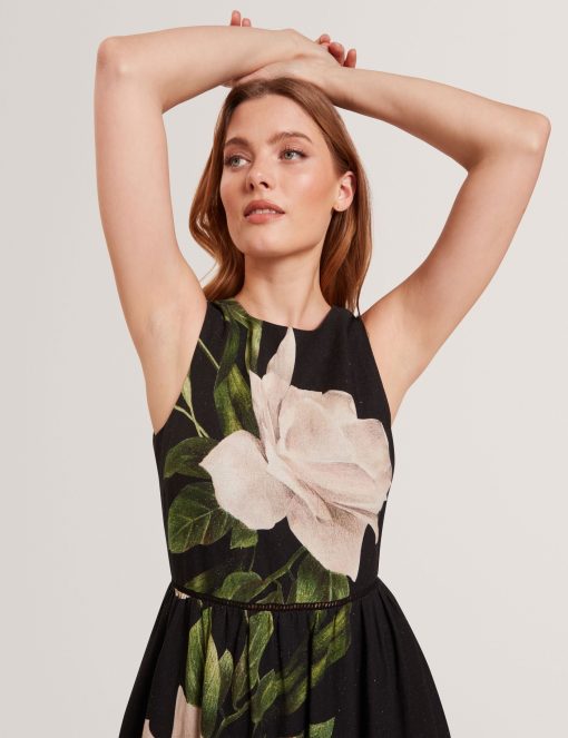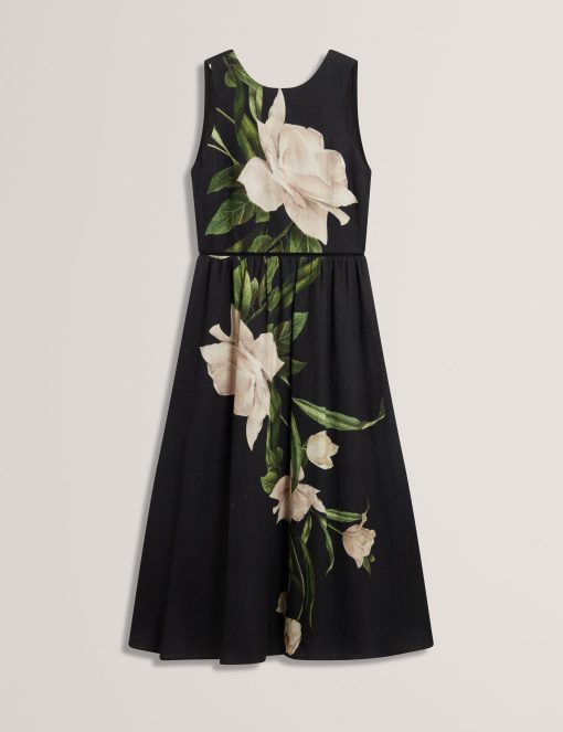Flow into effortless elegance with the Sleeveless Fit and Flare Maxi Dress, a flattering silhouette that gracefully moves with you, perfect for making a statement at any event.