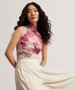 Bring sophistication and femininity together with the Ted Baker High Neck Mesh Top, featuring a delicate floral design and mesh fabric for a chic, modern look.