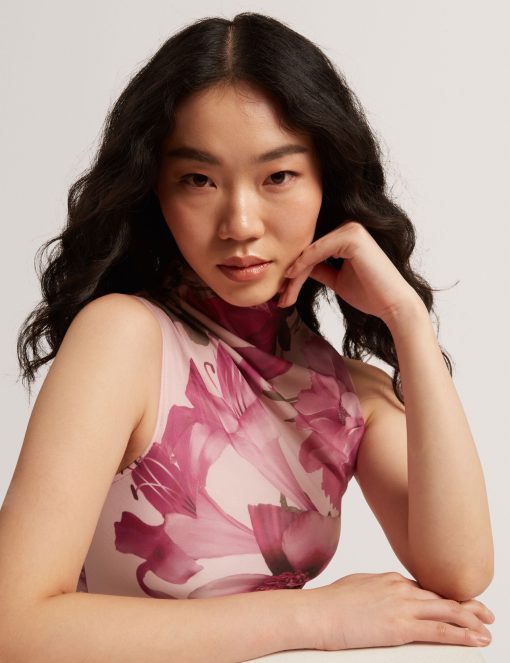 Bring sophistication and femininity together with the Ted Baker High Neck Mesh Top, featuring a delicate floral design and mesh fabric for a chic, modern look.