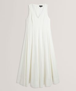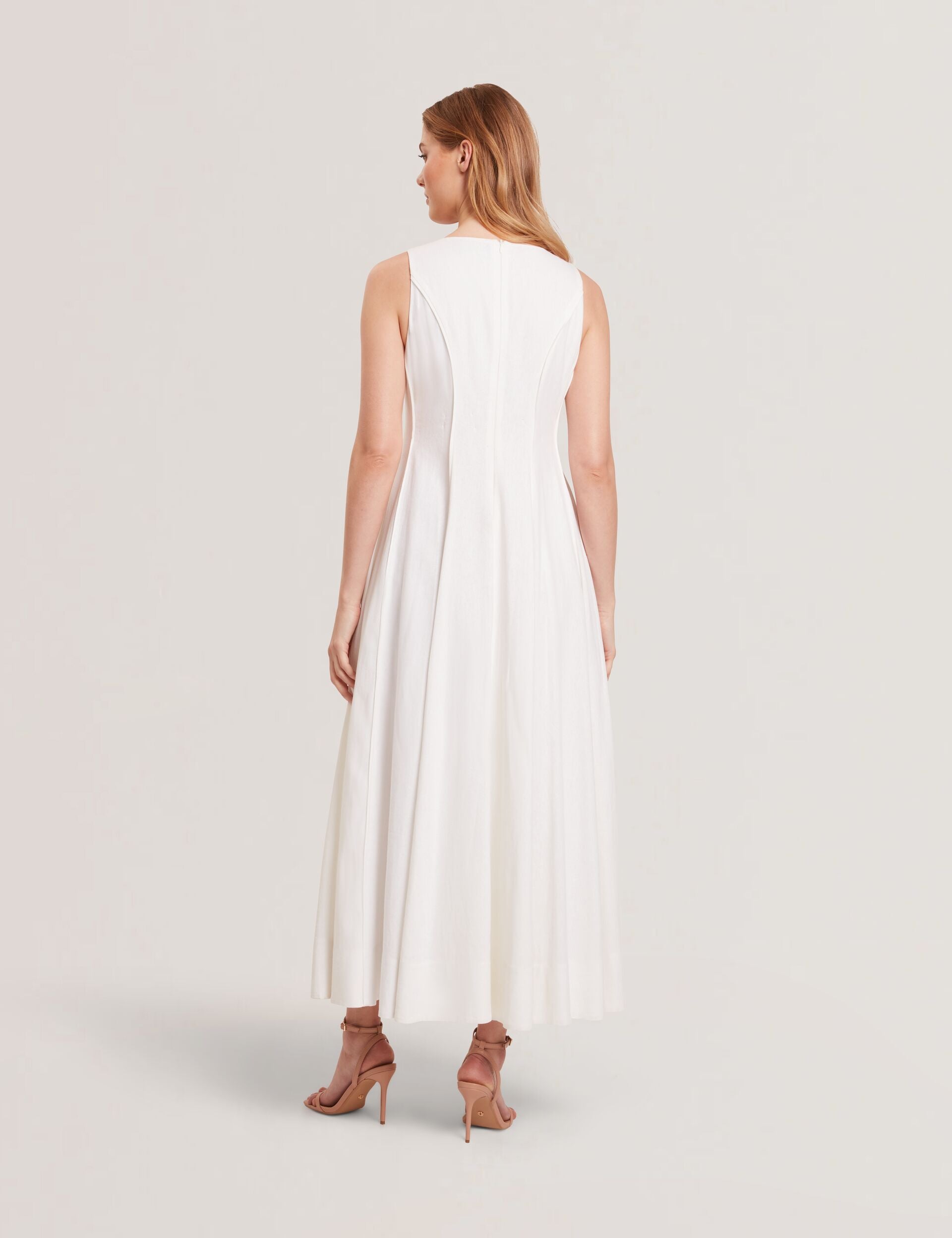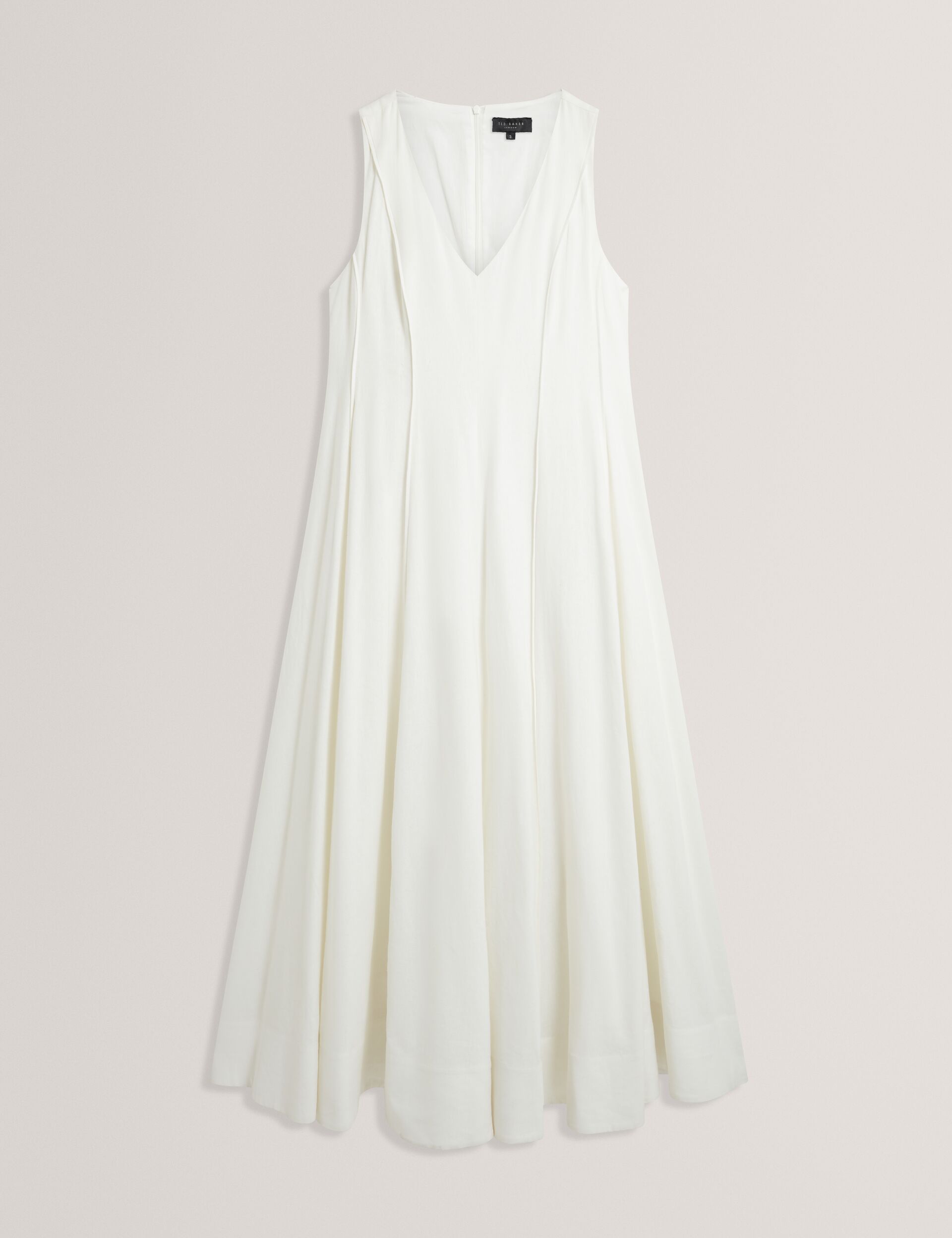 This linen sleeveless v-neck Pleated Maxi Dress combines the lightness of linen with elegant pleats and a flattering V-neckline, creating a sophisticated, breezy silhouette perfect for warm-weather occasions.