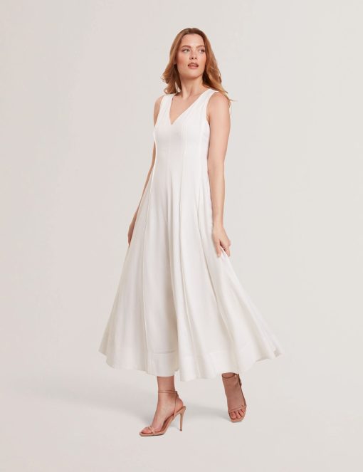 This linen sleeveless v-neck Pleated Maxi Dress combines the lightness of linen with elegant pleats and a flattering V-neckline, creating a sophisticated, breezy silhouette perfect for warm-weather occasions.
