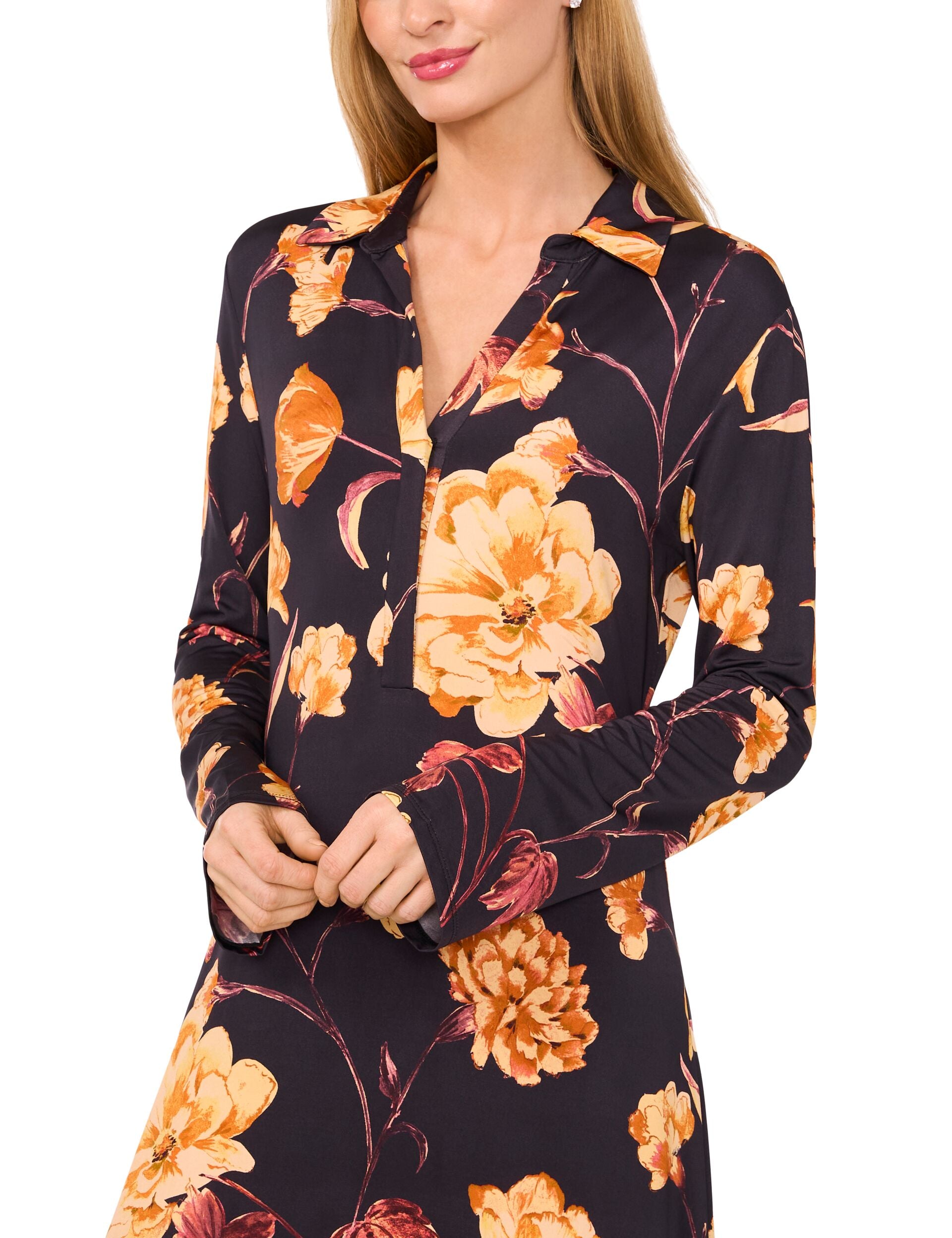 Graceful, refined, and effortlessly captivating — TARIA is your invitation to elegance. With its flowing silhouette and tailored polo neckline, it whispers sophistication with every step. The long sleeves add a timeless touch, while the maxi length creates a picture of poise and polish
