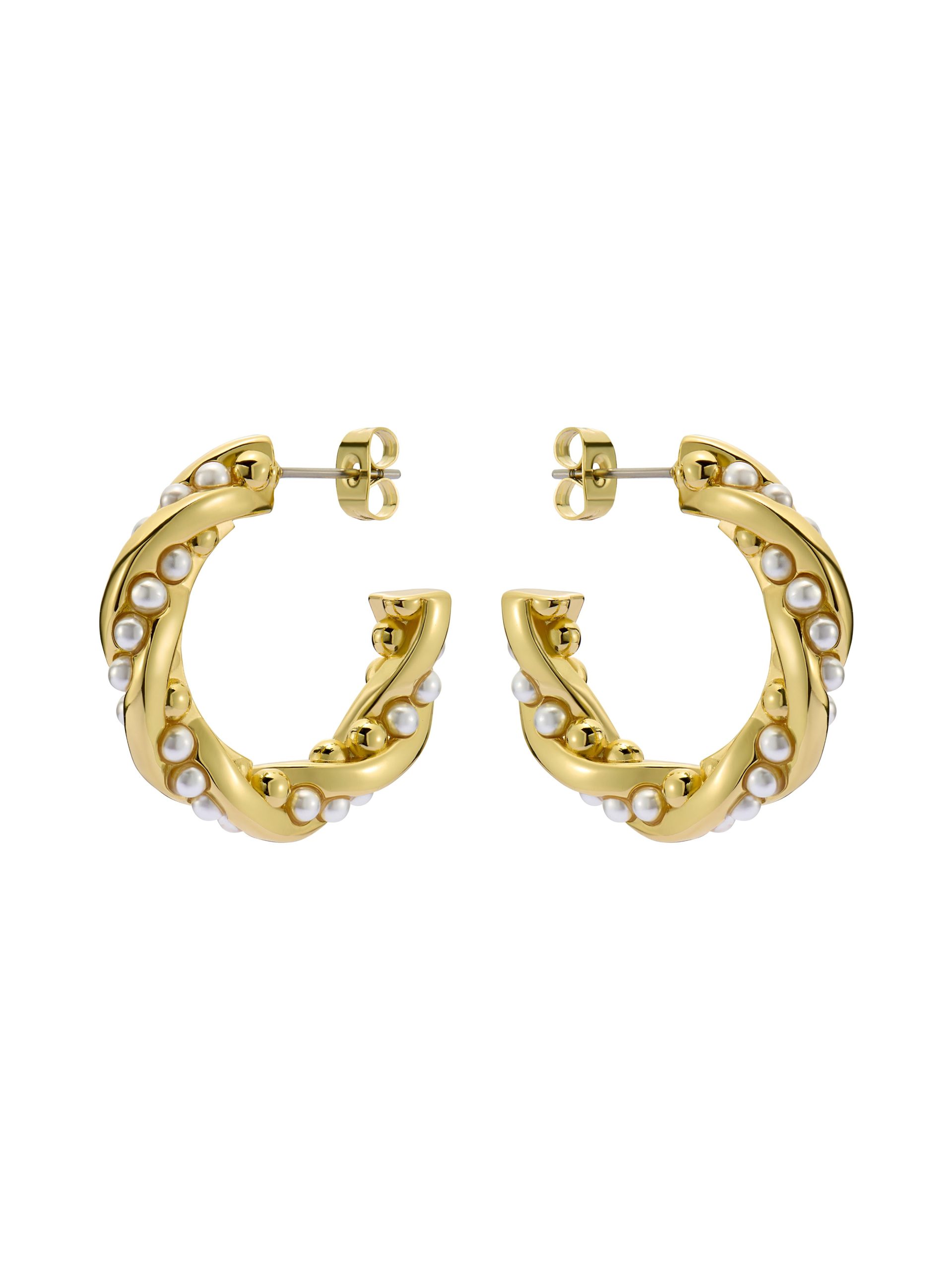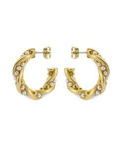 TIYAA turns the humble hoop earring into a statement. The chunky twisted design brings texture, topped with delicate faux pearl beads that will elevate your looks for both day and night.