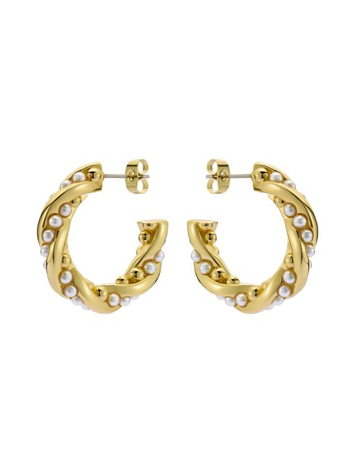 TIYAA turns the humble hoop earring into a statement. The chunky twisted design brings texture, topped with delicate faux pearl beads that will elevate your looks for both day and night.